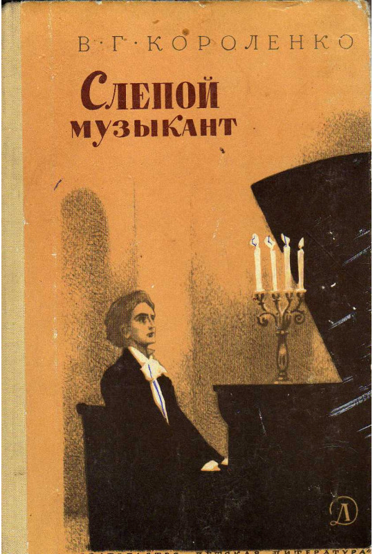 В повести "Слепой музыкант" рассказывается о жизни мальчика Пети Попельского, который родился слепым и не может отличить ту радость, которую получает ребенок, видящий мирящую природу, но его наделила даром музыки , и он вместе с дядей Максимом углубляется в мир музыки.